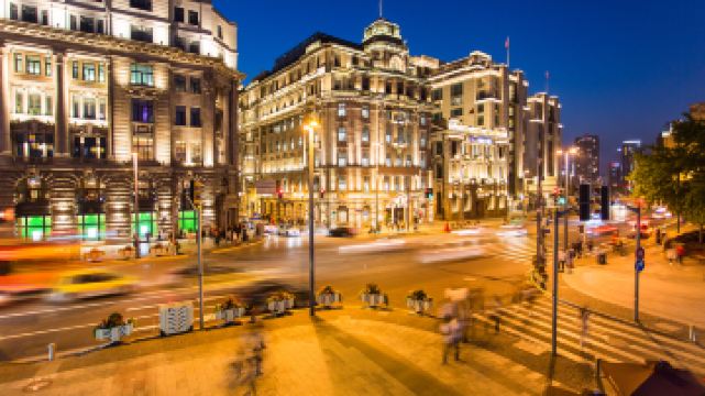 外滩万国建筑博览群位于浦江西岸,北起外百渡桥,南至金陵东路,长约1800米的街道上52栋风格迥异、异国色彩浓厚的历史建筑一字排开,成为了外滩的大看点之一,你可以从中窥见上海滩的百年历史变迁。外滩,自19世纪四十年代上海被辟为商埠后,就成为列强在上海的政治、金融、商务和文化中心,外国的银行、商行、总会云集于此。漫步在中山东一路上,你将看到的海关大楼、和平饭店南楼北楼、原汇丰银行大楼、亚细亚大楼、华尔道夫酒店、有利大楼等各种不同风格的历史建筑,联合哥特式尖顶、巴洛克式廊柱、西班牙式阳台、古希腊式穹窿尽收眼底,仿佛穿越到了上世纪的异国街道。晚上灯火通明,更加赏心悦目。大多数建筑现已被改建为中国太平洋保险公司总部、泰国驻上海总领事馆、招商局集团上海总部、浦东发展银行总部、上海海关、上海市总工会、上海外汇交易中心等商务办公楼,不对外开放。也有部分大楼成为了消费中心,如闻名遐迩的外滩十八号,便是原英国渣打银行驻中国的总部。一二楼是卡地亚等众多国际知名品牌旗舰店,往上为“外滩18号创意中心”、粤菜餐厅“滩外楼”、米其林三星级主厨餐厅、露天江景酒吧,是享受上海夜生活的必到之处。